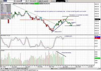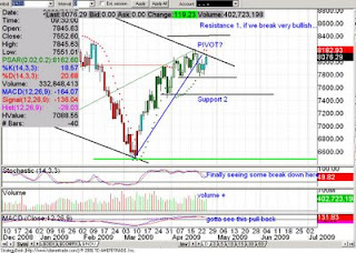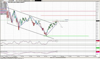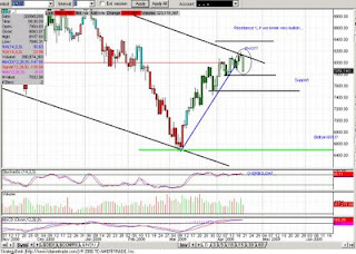 TOday was one of those days, you know where the futures are up wildly into the open gapping the market. MOst days like today are ripe for a trade called "fade the Gap".. ever gap is closed, especially when a major event happens like today causing a sell off of 150+ points pushing all the way to red close. Lets take a look at a few charts to see if we can formulate the trading direction for next week. I must admit i was caught off guard by the rally we had mid week, maybe i am just a contrarian.