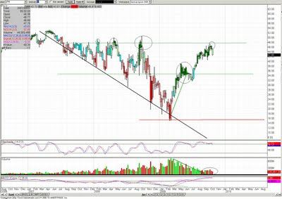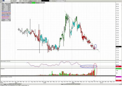 The USD gained in trading today on renewed chatter the FOMC is going to change its "language" on its current near 0% rate stance. The chart on the left again highlights on a weekly chart of the UUP the oversold condition and the massive capitulation volume coming off support.