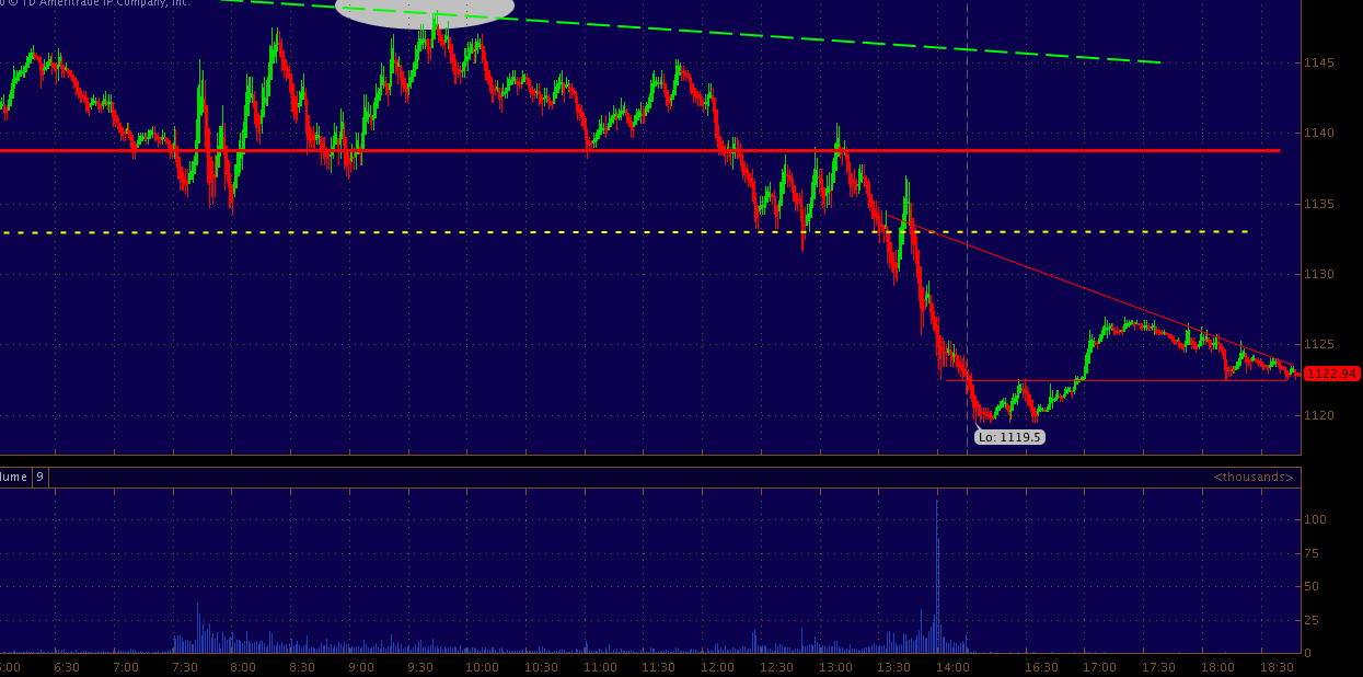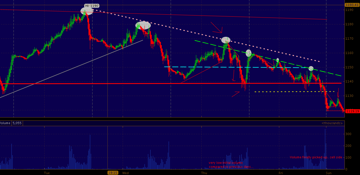 This chart is a progression from last week. 1119 still showing resilience even as a new low was put in.. Dollar near 2011 highs with Asia getting smoked.. Copper is weak as well..