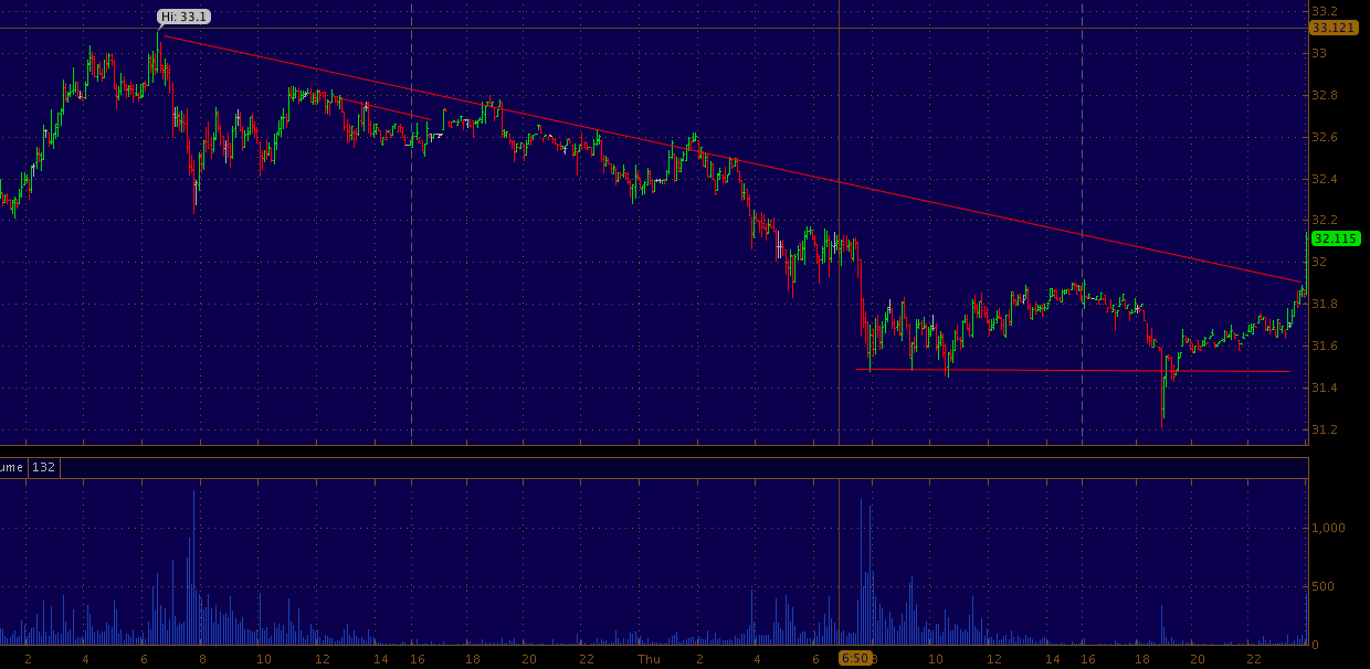Silver Broke Down Trend on 5min @ 2am (SLV)