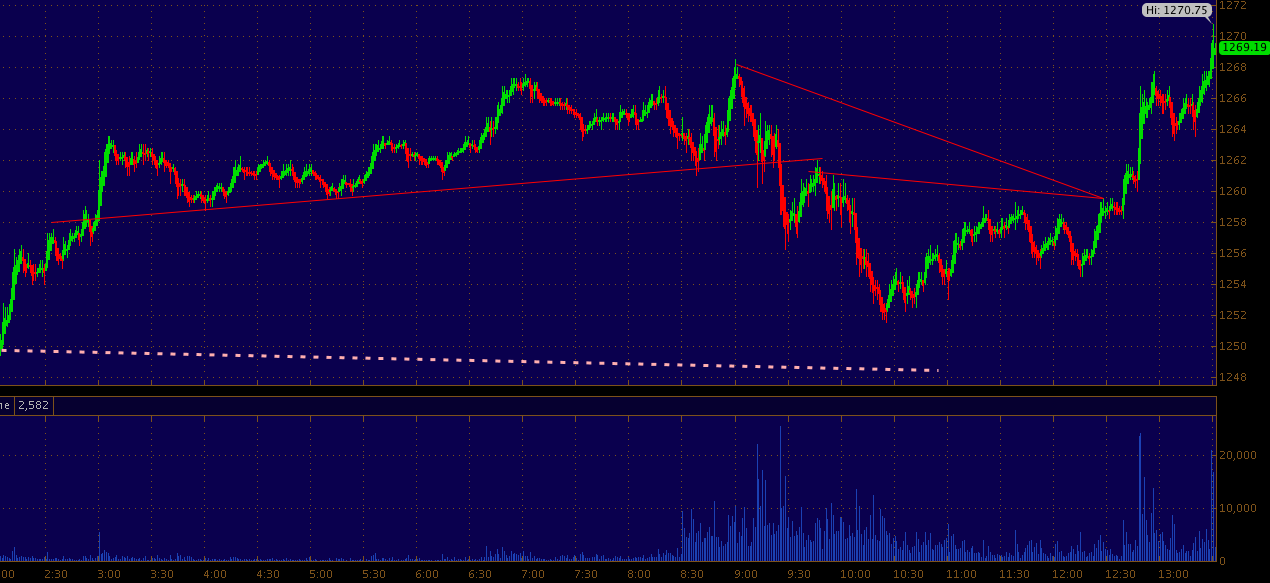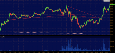 After the Berlusconi announcement he will resign the Euro jumped. Dollar dropped. ES popped the 1260 level.. as you can see on the chart below... standard games. we rally into the afternoon after a morning drop... headline market... watch your charts..