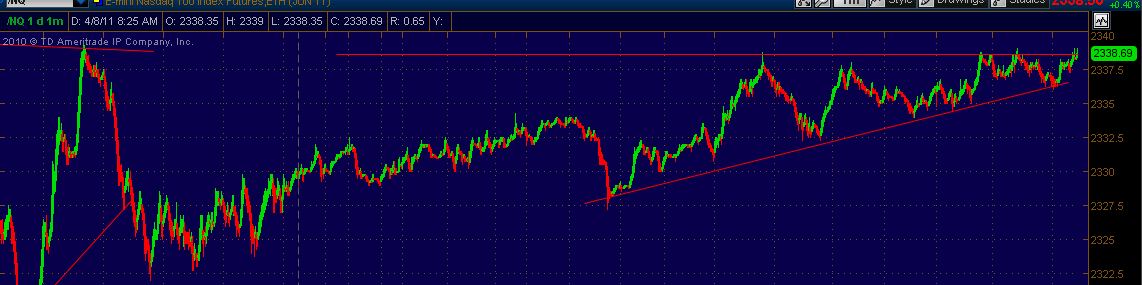 I have been noticing an odd trend the past month or so, seems on average every 6 minutes we have a pivot on the 1 min frame in the NDX and SPX. We bid for 6 minutes and 90% chance you will get a red candle... 6 more red candles then a green candle... This tells me the market is so tired it wants to flop over...