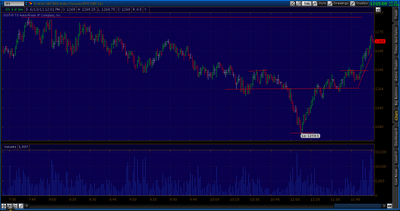 Anyway, you can see from the chart below after the ES fell down to 1265.25 a slew of buyer orders ripped down the offers, cough china, sending the spoos nearly vertical for a few minutes easily trading 10 handles higher. Reminds me of a butterfly, though they only fly well in air with little breeze. They do not fly well when a blast of wind comes in they must run for cover. The SPOO trades this way as well, it works great