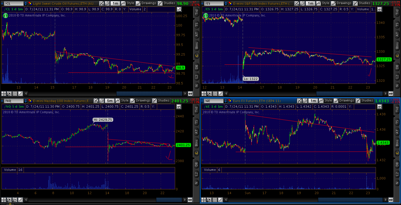 Today the Boehner debt for is scheduled for 6pm eastern, perfect timing for the last trading day of the month? Yeah you got me there.. Clearly traders are still very cautiously optimistic about the outcome of the debt situation,