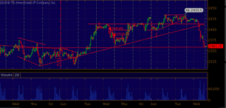 Technicals are still in play as you can see from the chart to the left with the 2360 level being the algo launching pad. For all you 'minimalist' traders how is the above chart Pretty minimal... volume and price action combined with a bit of lines highlighting trends which my mind draws for me. yours should to. in time. An no these lines were not 'form fit' check my pervious posts. Clearly 2360 is a line in the sand, with 2355.75 being the low. The SPOOS (s&p futures) pushed through yesterdays lows of 1295.75 into the close of cash.... Tonight the political theatre continues..