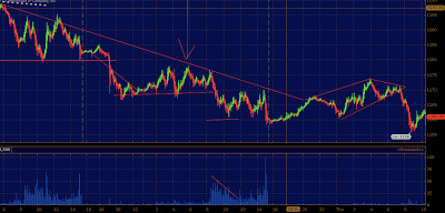 That being said you can see the the yellow dotted line which as been overhead resistance this whole week was tested again, and again failed this afternoon.