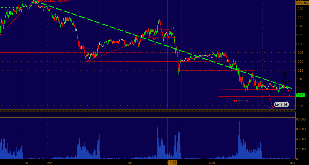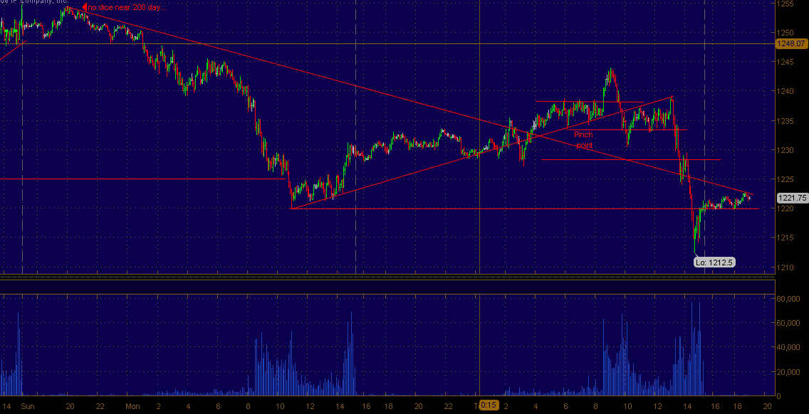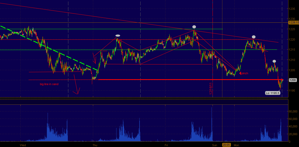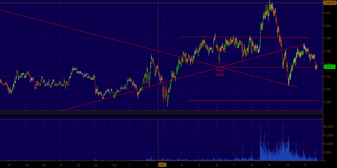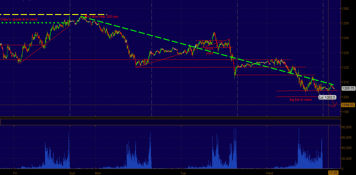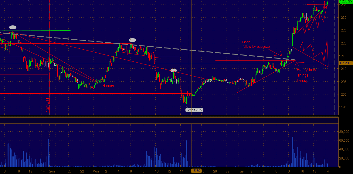 Dollar fell off of highs of 80.31 this morning around 6 am as the ES sat on 1246.. from that point on the DX slid and the ES rose as well as Gold... at one point gold was down 32 points only to retrace 50% of it's losses as the euro crawled back into bed after fallout clear under 1.30 mid day yesterday.