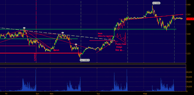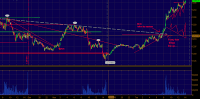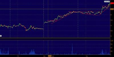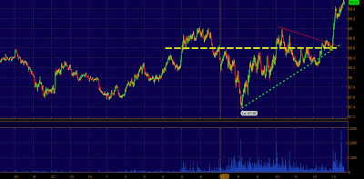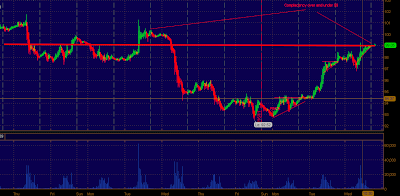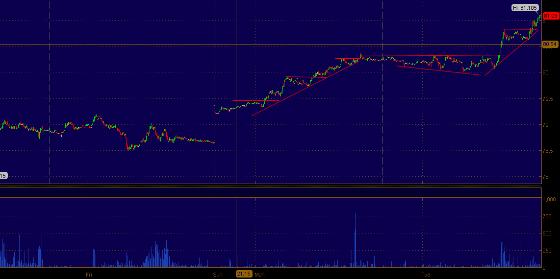 As the dollar fell off of highs of 80.31 this morning and the rest is history............Same prices .. different day. Yesterday's selling from cash open on has been retraced today on half the volume. Strong market? eh Or just a market which gets ramped at any opportunity of a thin market?