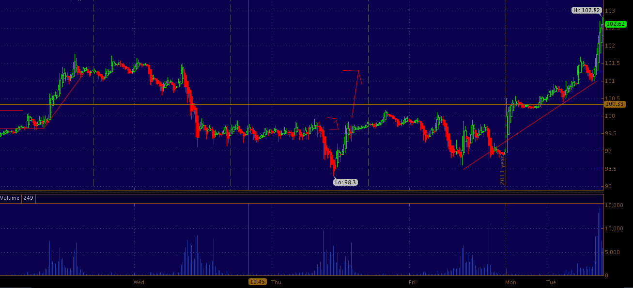 5 min ES We have failed to break over yesterdays high of 1311.5 though 1311 did see a few test in the early morning hours as asia and eu...