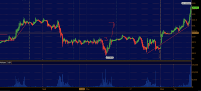 Updated S&P chart below..... 1325 reached . 1327.5 traded 1/26/12 5 min ES . notice how many trend lines are still dictating pivots Go...