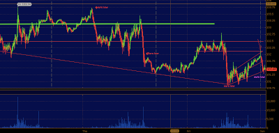 15 min ES. Notice light blue dashed line. held. WICK though. Two things happend today which should stand out in your mind. 1. Bonds...