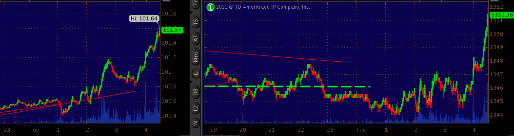 5 min 6E. notice dollar and bonds coming off as euro rallies off lows under the 4 hour bolliger ... |