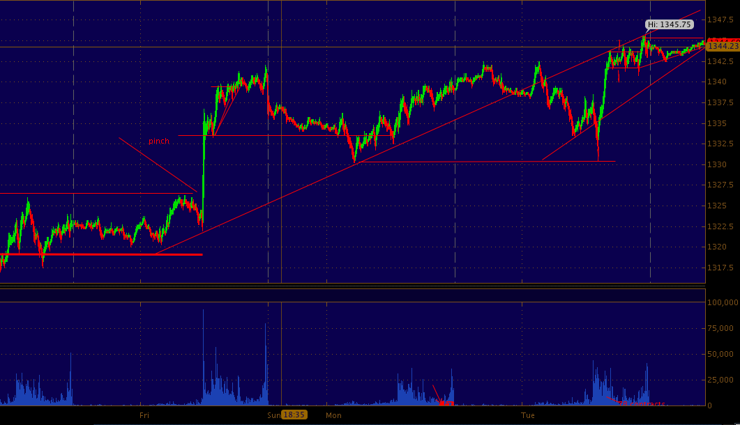 In the chart to the right and below you can see perhaps why the ES rallied to the point it did this morning.. 10 handle rule off lows and the price ran into overhead resistance drawn from friday's pre market low/support.