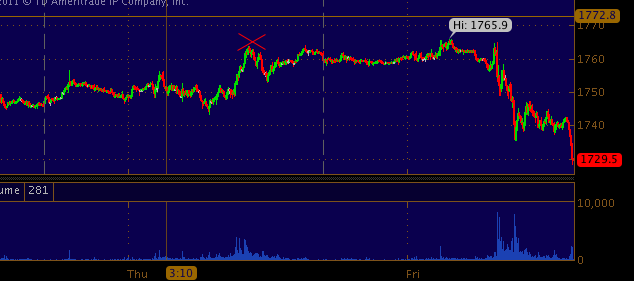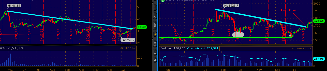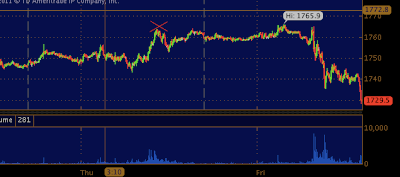 2/3/12 Update* Gold down 30 today.. SLV down 2.45% .... X price level of GC yesterday when GC looked a bit stretched. (1764). Currently 1729.80