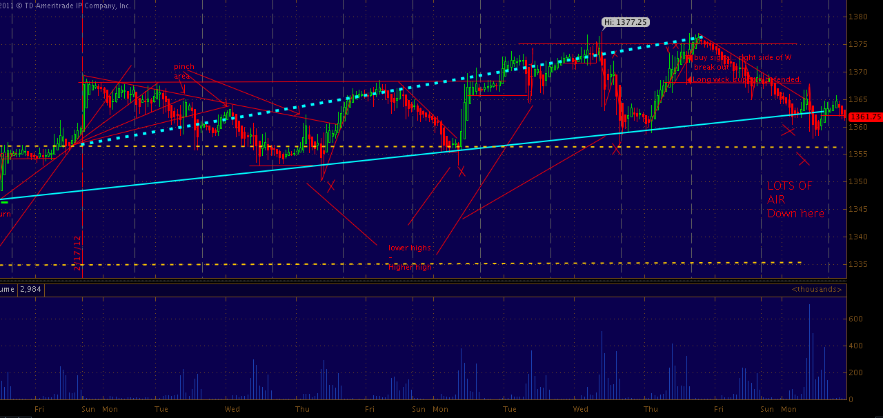 Lots of air under the 1355 level.... the 55-35 zone is no mans land, when the price enters this area volatility is surely to spike.