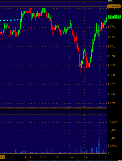 looking like 1375 is in the cards if 137.50 can hold.. Below 1369 could trigger some stumbling sell orders.. 1 min ES