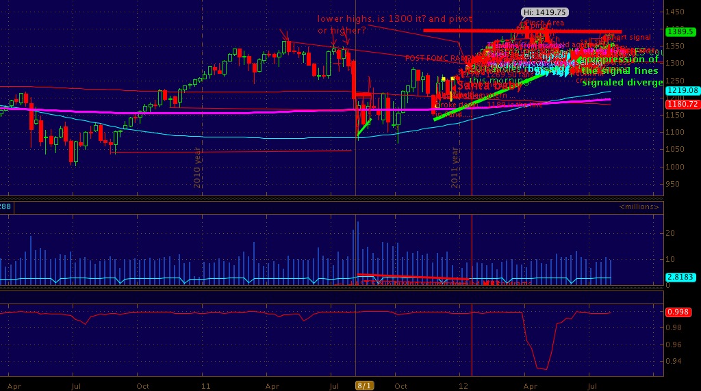 Building on a previous post ......we are still under 4 month highs. though only slightly.. nonetheless 1450 could be a very real possibility if the up trend denoted by the green line is held into a break out over the 1400-1419.75 level. This wont happen over night..