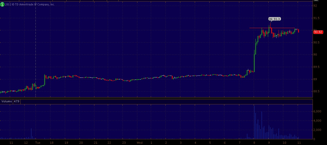 1 min CL. notice the ramp up over the 90.13 resistance level. |