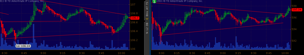 You tell me what is going on her? me thinks cash slowly moving out of bonds, into equities.. THOUGH the strength of the dollar is causing arbitragers to sell the index's, almost canceling out the fresh money coming out of bonds into equities... Or we see dollar rise and equities stay bid, i doubt it happens..