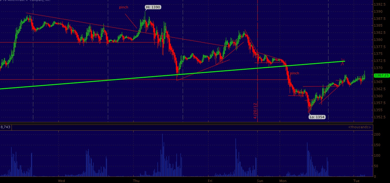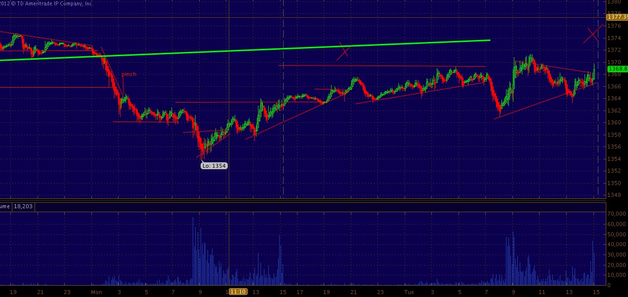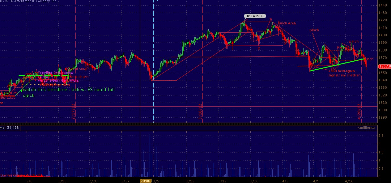 30 min ES ( notice how the up-trending green line was a magnet.. now it is resistance/could turn support |