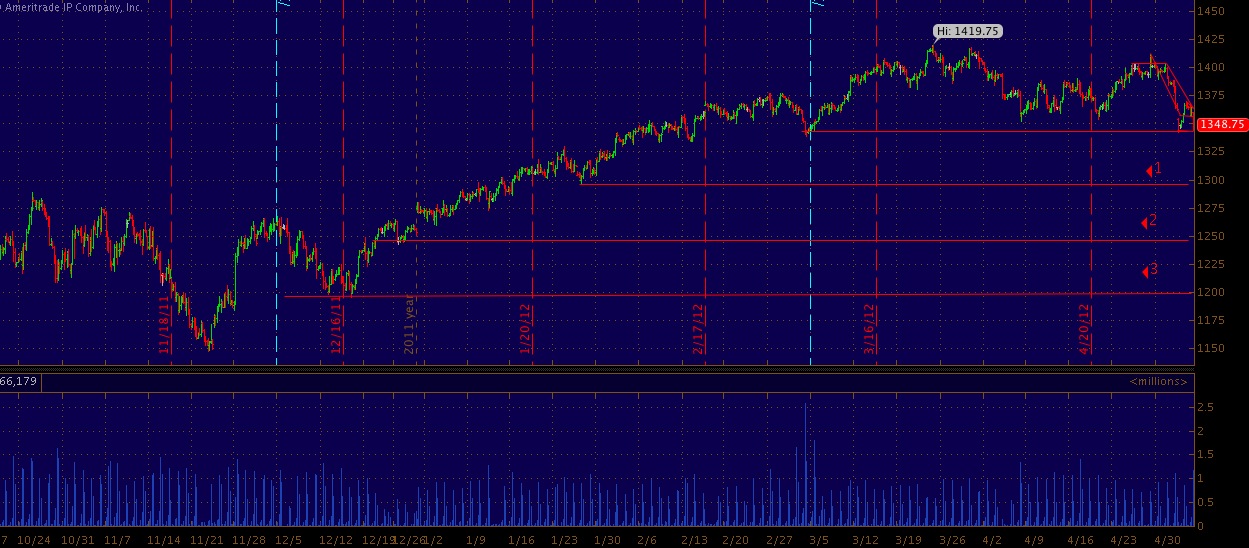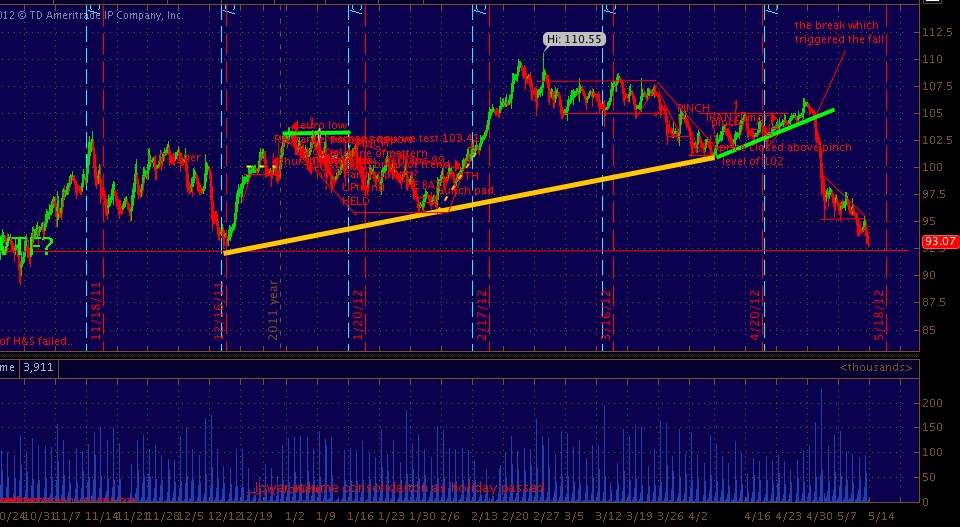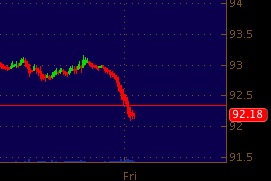 I am looking to the 92.50 level tonight, if this level were to fail 92 on the deck... if this is to fail 90 on deck.. then 87.. 85 .. then euro crisis low of 74.95. If this were to happen you can bet the DX will be at 83-85 and ES 1200-1250 area.