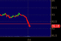 Crude continues to crush itself after failing a clear uptrend at the 105 level just under two weeks ago. Tonight crude has traded into 92.60 despite the dollar and euro remaining quiet after their Tuesday afternoon antics.