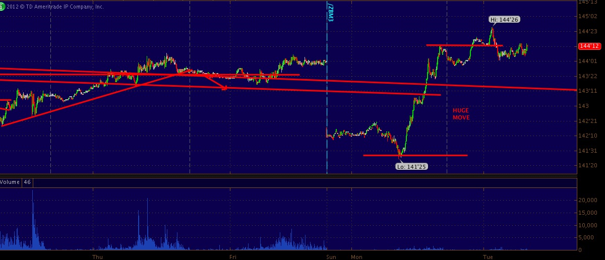 Bond prices with the 30 year higher to 144'09, ZB melted into a fresh high of 144'26 late Monday as 6J increased in value against DX and other major crosses. This push higher is what pushed ES into 1484.50 before the pressure relented. Thus major weight placed on 1484-85, under = test of Monday lows.