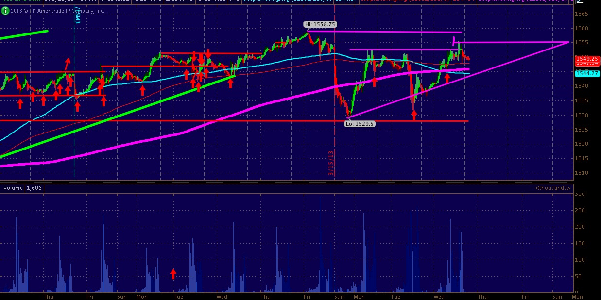 With all the being said.. based on the chart to the right a break under 1548 will trigger a move into 1545.. .if 45 fails it is back to 40.. if 40 fails.. back to 35... Pretty simple, i know you want some fancy formula or trader pseudonyms but it really is 5 point rotations dominating the price action. Simplicity or complication does not matter if you P&L is green.