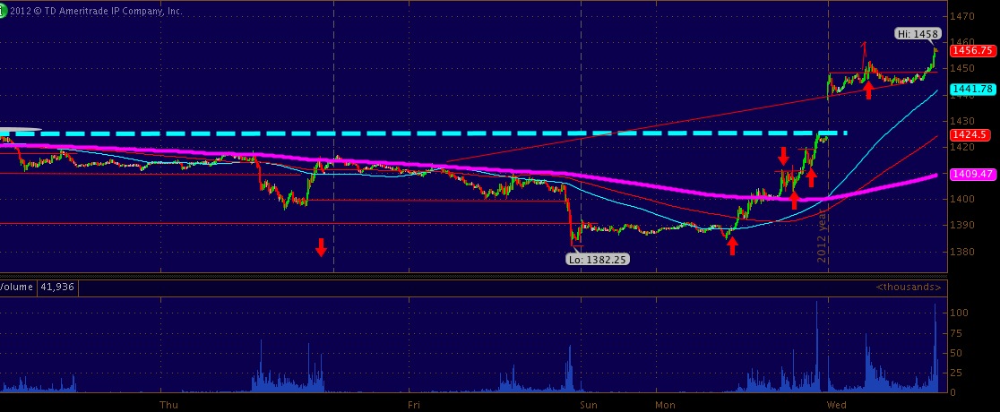 Much of the tape needs to consolidate and digest the past week's up move so do not be alarmed if we break 1470, but i would not be surprised if we take out 1485 before the day is over.