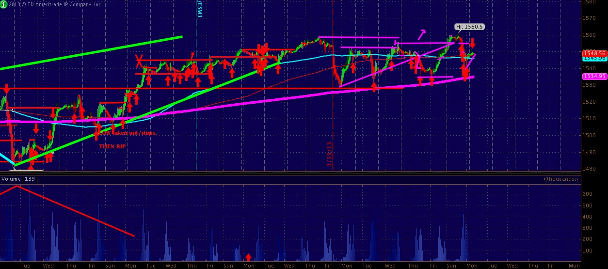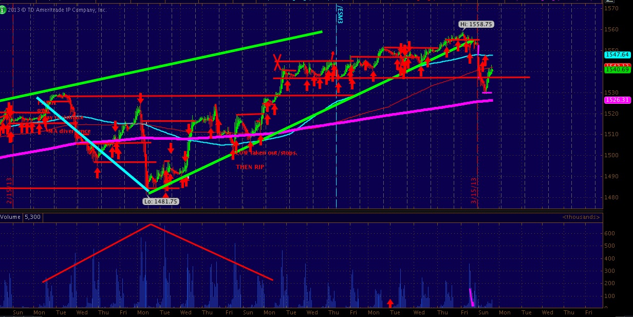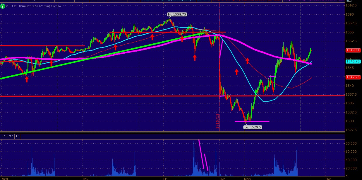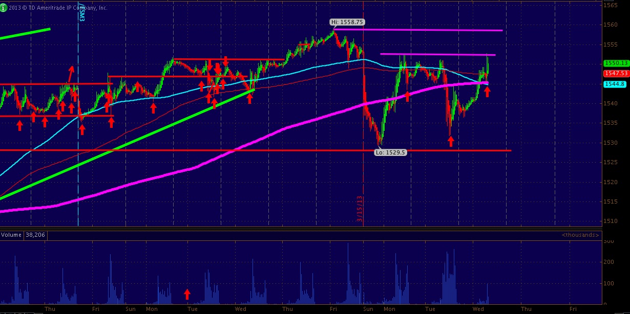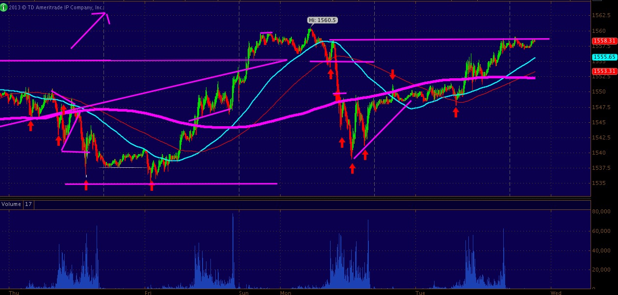 Currently the relationship between the ES and T complex is fairly in tact though both bonds and ES are red with 1556.50 trading but by only fractional perfect. The 1553.50 level is the pinch lower area with 1550 before 1545 as mechanical support.