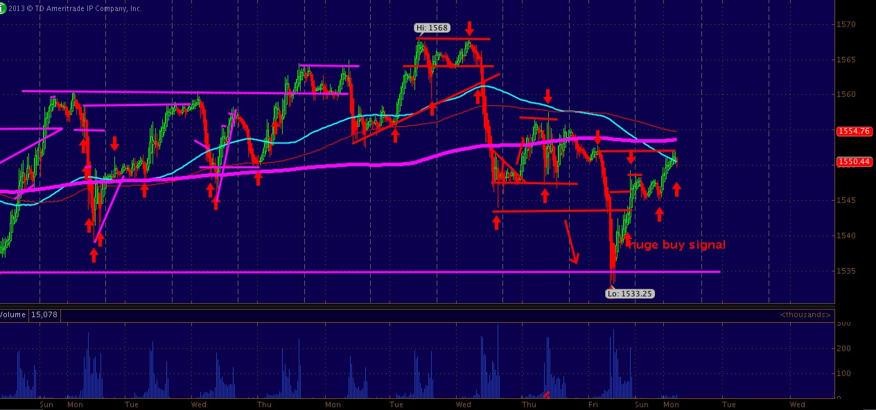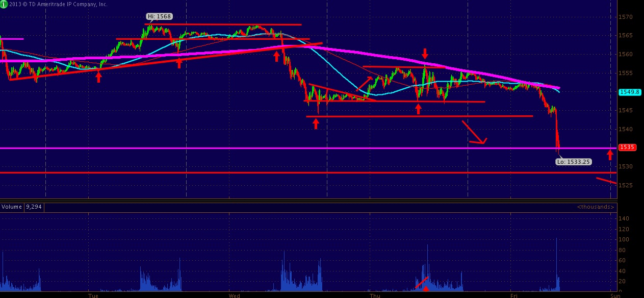 SO yes if you are good at math you can deduct monday from today's #'s and you see Tuesday has been erased. Tonights line in sand has been placed @ 1540 with 38's being the event horizon before 1529.75 comes up fast. Under 29.75's i sincerly believe we could see 1500 shortly after, especially if the break of 29.75 is coupled with..